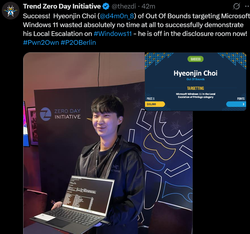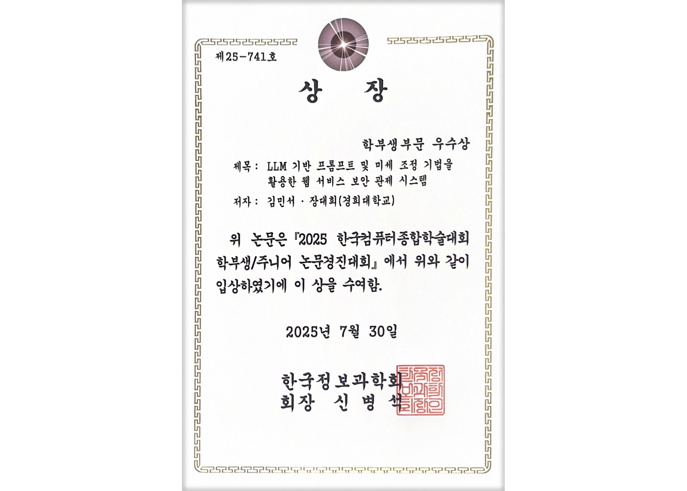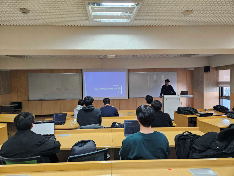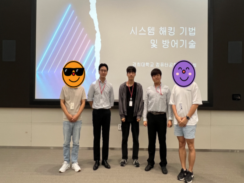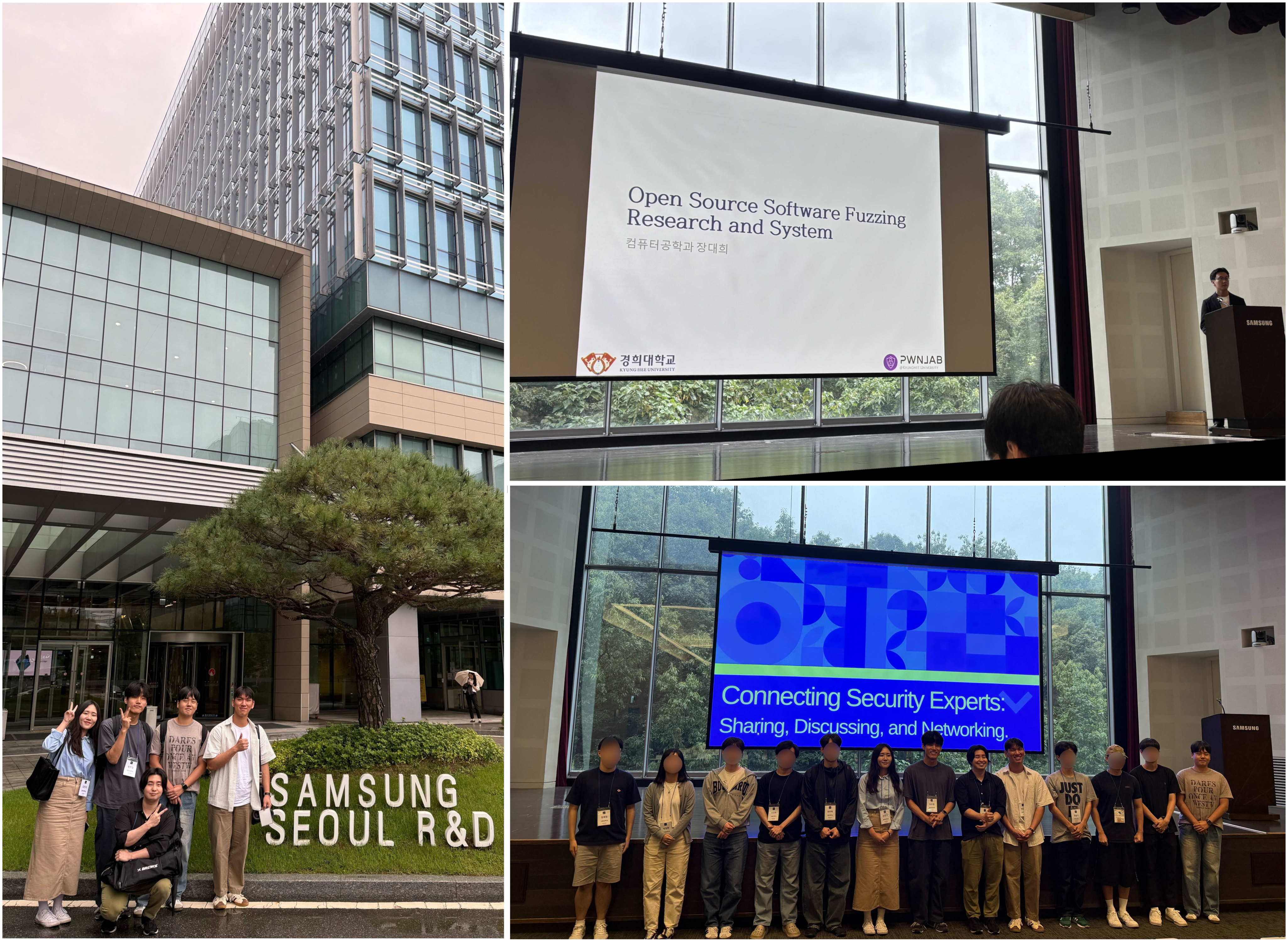 Gallery 2025 삼성MX 기술교류회 참석 2025 경희대 대동제 연구실 친목 활동 국정원/국보연 주관 CCE 2025 해킹대회 본선진출 (경희대미남해커들 팀) 김민서 석사과정, AI보안논문 우수상 수상 PWNLAB 학생들의 연구실 활동 (IT플랫폼안전성연구회 운영, 드론해킹시연) 연구실 세미나 및 친목회식 미국 라스베가스 연구실 단체 관광 2025 DEFCON 연수 및 일본 보안기업과 AeroSpace 부스 공동운영 2025 상용 인공위성 지상국 견학 청와대 청년 화이트해커 행사 (임우협 박사과정) 제1회 드론해킹대회 우승 (차현수 석사과정) 드림핵 CTF 개인전 본선진출 (임우협 박사과정) 2024 미국 BlackHat 해외연수 LG U+ 해킹대회 우수상 (오경제 석사과정) ISITSU CTF 국제 해킹대회 우승 (임우협 박사과정) 최현진 석사과정 2025 Pwn2Own 수상 (Windows 11 LPE 종목) 2025 봄맞이 벚꽃 나들이 AutoHack 2024 입상 (오경제, 황선혁 연구원) 2024 국제드론해킹대회 (PWNLAB 문제개발 및 대회운영) Hack the Drone 2024 컨퍼런스 (테르텐/경희대 공동운영) 연구실 해커톤 - PCB 분해 및 RF모뎀분석 방위사업청 중간평가행사 - 드론 제어권탈취시연 2024 부산 워크숍 2024 블랙햇 연수 2024 세종핵테온 CTF 입상 (정민우 연구원) 2024 우주안보학회 워크숍 2024 PWN2OWN 행사 (태인규 석사과정) 2024 세종핵테온 CTF 활동 (PWNLAB 연구원 5명 본선진출) 2024 코드게이트 CTF 경희대미남해커팀 활동 2024 DEFCON CTF 예선활동 (PWNLAB 연구원 3명 본선진출) 2024 정보보호학회 학술대회 발표 (연동현 석사과정) 2023 연구실 연말 회식 2023 청와대. 대통령과 청년 화이트해커와의 대화 행사 2023 국가보안기술연구소 김덕진 박사님 세미나 2023 삼성 CTF 대회 활동 (PWNLAB팀 + Naver팀) 2023 테르텐-PWNLAB 협의체 체결식 2023 LG전자 세미나 2023 드론해킹대회 세미나 (황선혁 연구원)