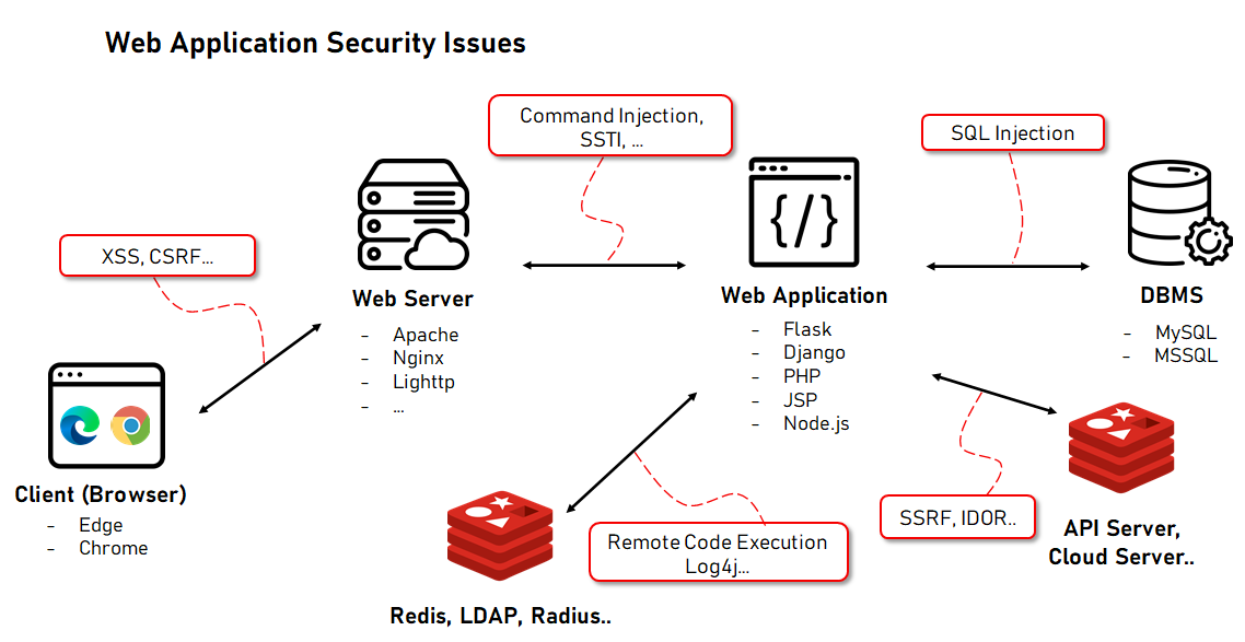 스캐너 등을 통해 비교적 쉽게 발견하고 고칠 수 있는 전통적인 웹 어플리케이션에서의 보안문제들 (SQLi, XSS, CSRF 등) 은 웹 개발 인프라의 발달로 인해 줄어드는 추세이나, 반면 REST API 보안문제, Deserialization, 타 시스템 연동에서의 인증문제 등 시스템의 구성 자체가 복잡해짐에 따라 발생할 수 있는 논리적인 취약점들은 늘어날 것으로 예상되며, 이에 따라 선제적으로 취약성을 발견하여 공격을 방어하기 위한 연구가 필요합니다. 저희 연구실에서는 Client 측 (브라우저 보안, JavaScript RCE, UXSS 등) 보다는 Server 측에 대한 보안문제들을 더 중점적으로 연구합니다.